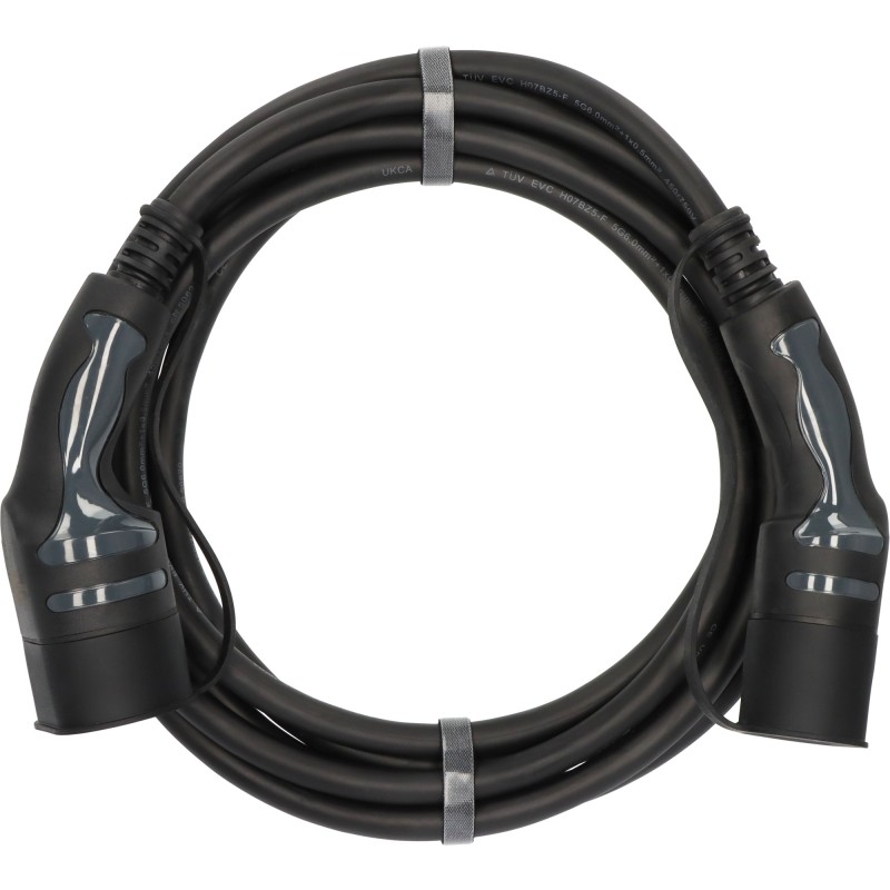 * Fiche/connecteur: type 2 sur type 2 * La fiche ou le connecteur de type 2 est protégé contre le passage des véhicules selon la norme IEC 62196 * Mode de charge: Mode 3 * Phases: triphasé * Longueur du câble: 5m * Courant assigné: 32A * Tension assignée: 480V AC * Température ambiante: -30°C - +50°C